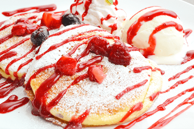 とちおとめをふんだんに使用した当店自慢のパンケーキ。